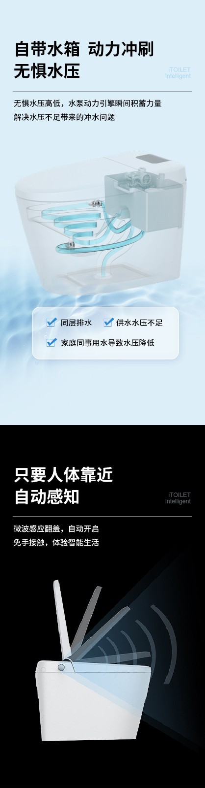 3、主要功能:AI語音控制(可選)、著座感應(yīng)、腳感翻蓋/翻圈/沖刷(可選)、停電(接USB)沖刷、暖風(fēng)烘干、無線遙控、凈味除臭、