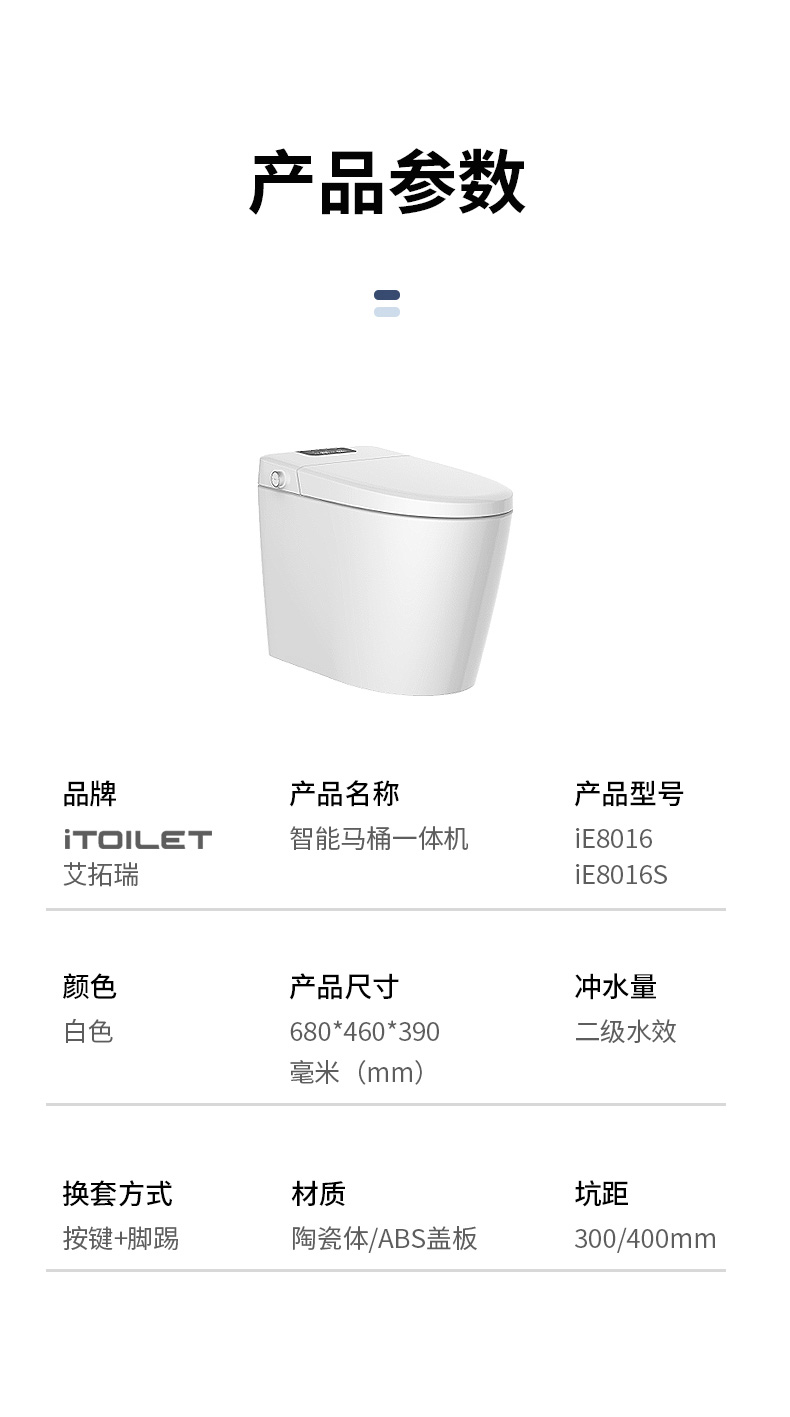 產(chǎn)品型號:iE8016S 智能馬桶