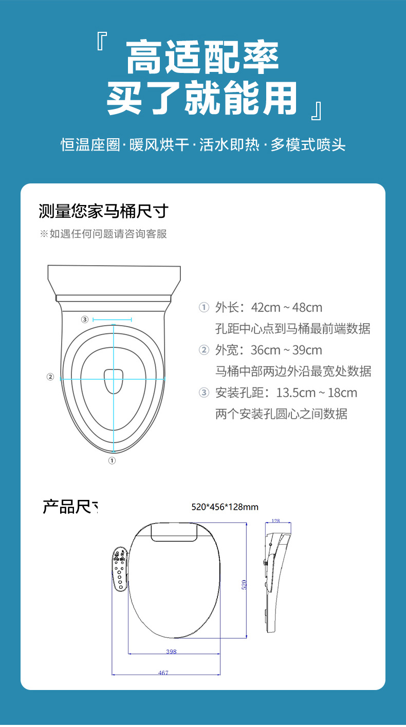6、4檔風(fēng)溫、水溫、座溫可調(diào)節(jié)、