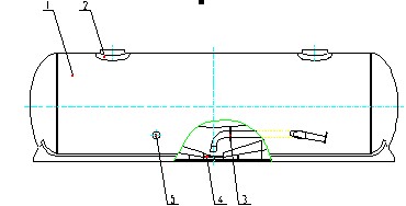罐體總成主要由筒體、加料口、流態(tài)化床、出料管總成、進(jìn)氣管及其它附件組成,如圖一所示。罐體為直筒圓柱式結(jié)構(gòu),其制作工藝良好,能實(shí)現(xiàn)埋弧焊接,筒體采用5mm優(yōu)質(zhì)鋼板卷制而成,兩端采用6mm 厚標(biāo)準(zhǔn)橢圓封頭,焊接牢固,具有整體強(qiáng)度高、剛性好、承壓好、使用性能好等特點(diǎn)。罐體為單倉(cāng)兩氣室式結(jié)構(gòu),罐內(nèi)流化床寬度適中,布置合理,能有效的縮短卸料時(shí)間、提高了罐體的容積利用率,降低了?;衣?;在罐體頂部開(kāi)有兩個(gè)進(jìn)料口,打開(kāi)進(jìn)料口人孔蓋一方面可以向罐內(nèi)加料,另一方面在罐內(nèi)需要檢修時(shí)方便人員進(jìn)出。