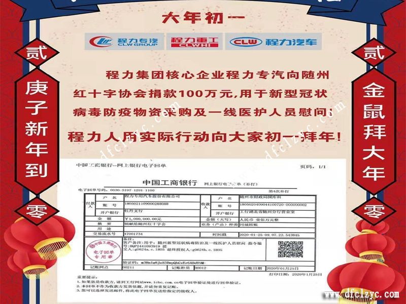 大年初一,程力汽車集團(tuán)董事長程阿羅的一則微信刷爆隨州人的朋友圈,他說,這是所有程力人的心意,將專項(xiàng)用于隨州新型冠狀病毒感染肺炎防治物資保障和醫(yī)護(hù)人員慰問!