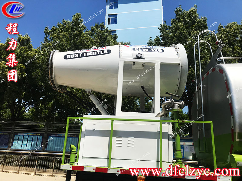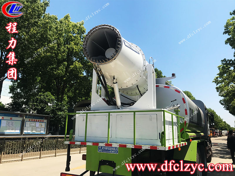 罐體前部安裝客戶精選的30-90KW發(fā)電機(jī)組(功率隨使用需求選配);罐體后部帶工作平臺,專用裝置為抑塵霧炮機(jī),型號LM-40,可360度全方位的旋轉(zhuǎn),以便各種角度的噴灑,讓農(nóng)作物及降塵物無死角受益。上圖為程力集團(tuán)東風(fēng)多功能抑塵車