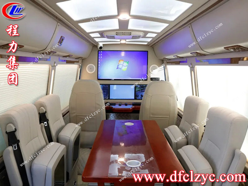 整車內(nèi)飾方面采用簡潔、舒適、的概念,整車車身以及車頂部分采用的是全景天窗、它經(jīng)過特殊工藝處理和無污染隔音、隔熱、濾波防干擾等阻燃及車內(nèi)聲學(xué)處理達(dá)到國際先進(jìn)水平。整車還搭載了先進(jìn)的通訊衛(wèi)星系統(tǒng)、會議辦公系統(tǒng)、遠(yuǎn)程視頻會議系統(tǒng)、照明系統(tǒng)、電源保障系統(tǒng)、多媒體交互終端、圖像監(jiān)控儲存系統(tǒng)、核心高科技等技術(shù)裝備,是通訊指揮車中的領(lǐng)導(dǎo)者。